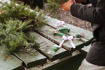 At your workshop, you'll learn how to create your own one-of-a-kind holiday wreath to take home with you and enjoy all season. Along with all of your cuttings, we'll provide all of the tools and decorations needed. (Pruners, wiring, ribbon, etc.)